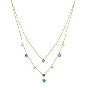 Double layered heart-shaped blue Topaz & Diamond drops necklace