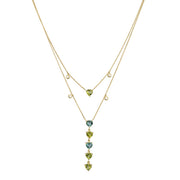 Heart shaped Peridot, Green Topaz & Diamond drops two layered necklace