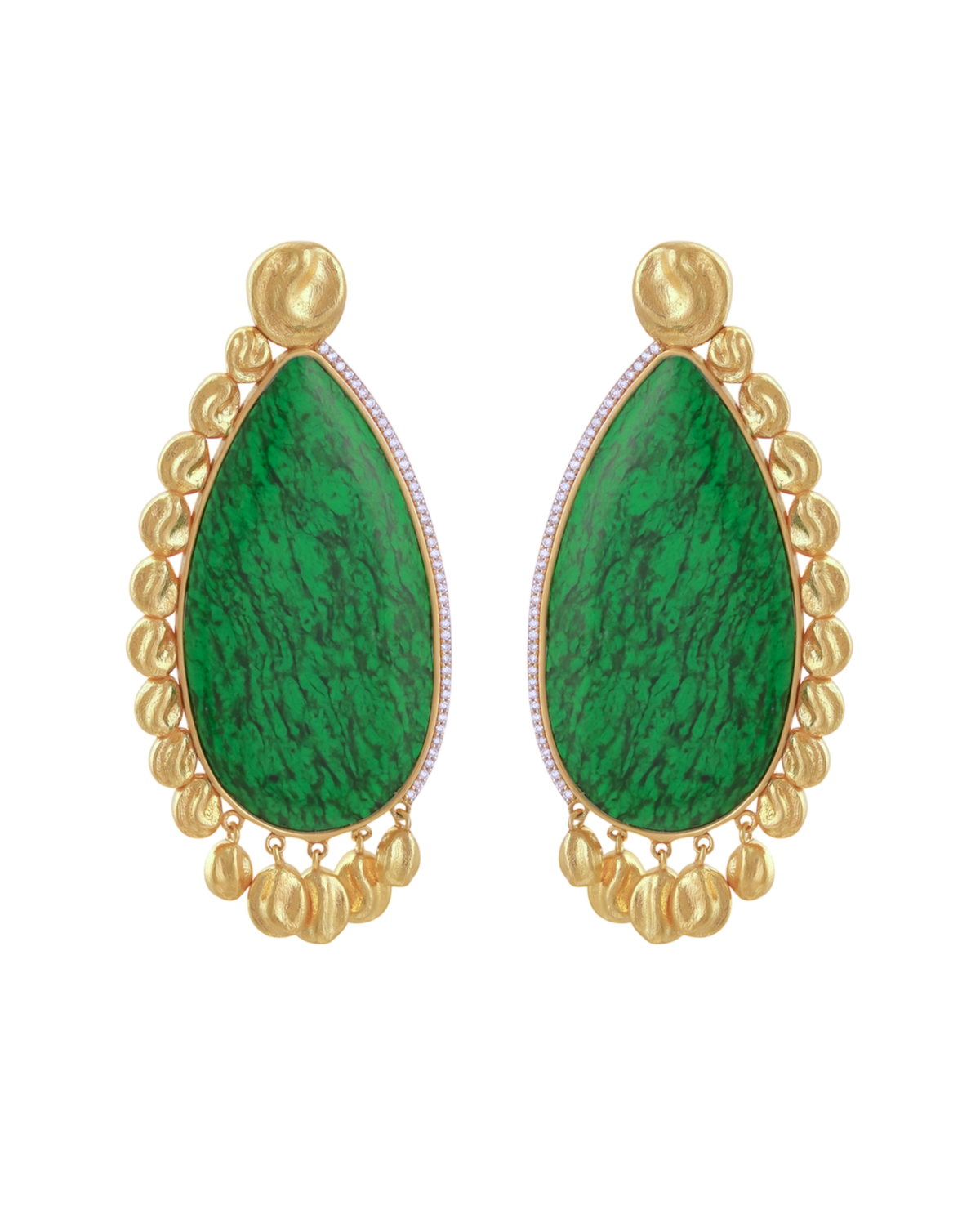 A rare expression of Burmese jade, set against hand-worked gold. Gold falls softly, while chloromelanite anchors the moment. Nothing rushed. Nothing accidental.